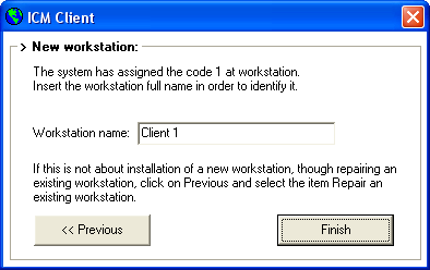 On the box “workstation name” select the workstation name you wish to reinstall and click on “Finish”; proceeding in this way it will not be added a new workstation name on the server, the client instead will be matched to the selected workstation.